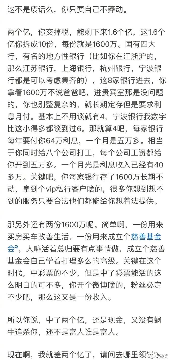 如果中奖两亿你会怎么安排