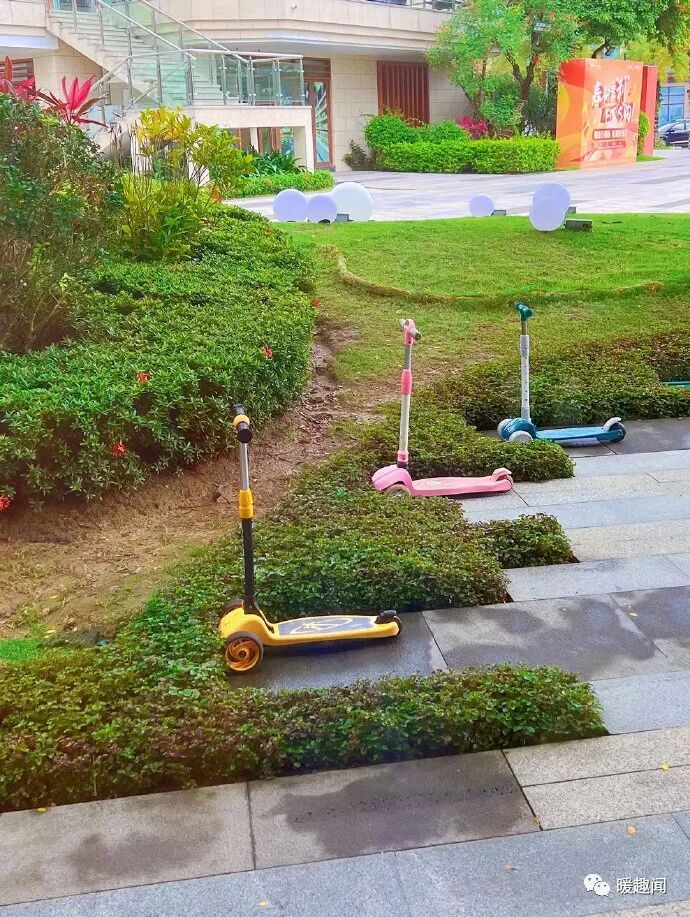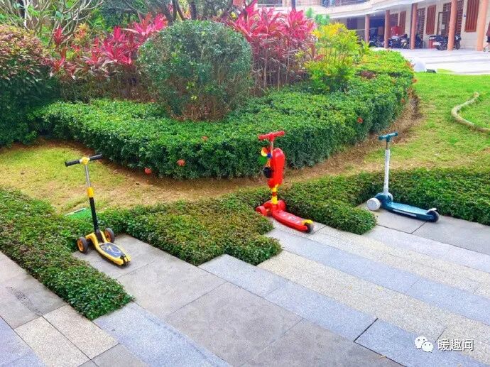 绿化成了小朋友的停车场
