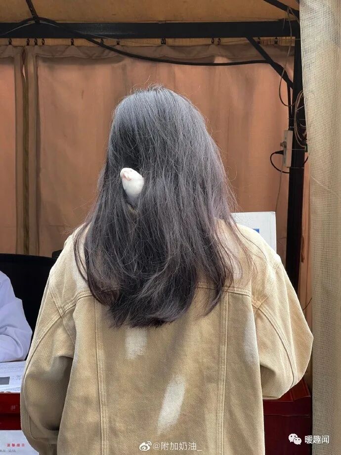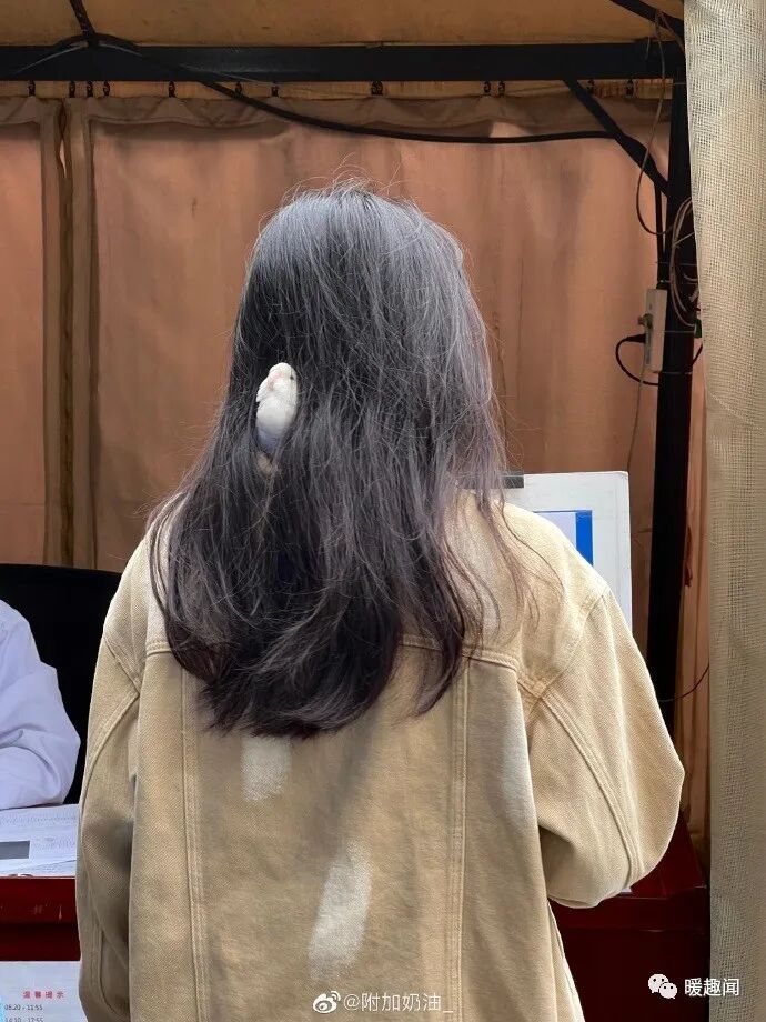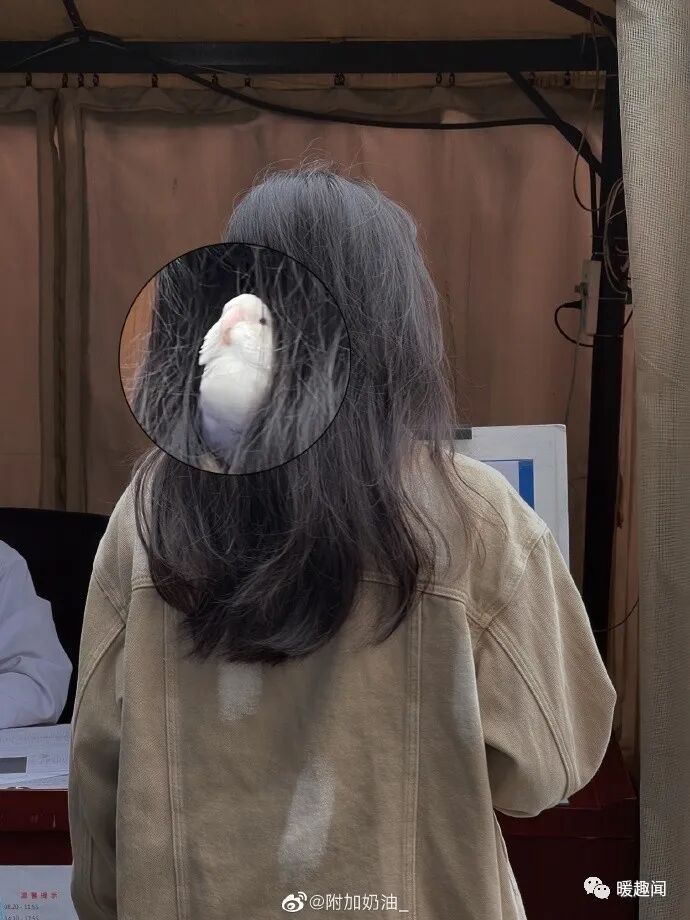 做核酸前面的小姐姐头发里藏了一只小鸟!