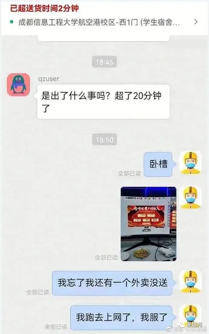 外卖小哥奇葩的迟到理由