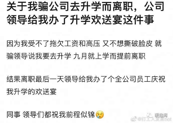 骗公司升学了离职,结果公司给办了升学欢送宴