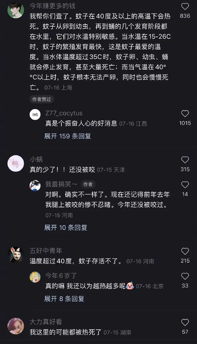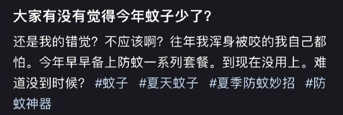大家有没有觉得今年的蚊子少了