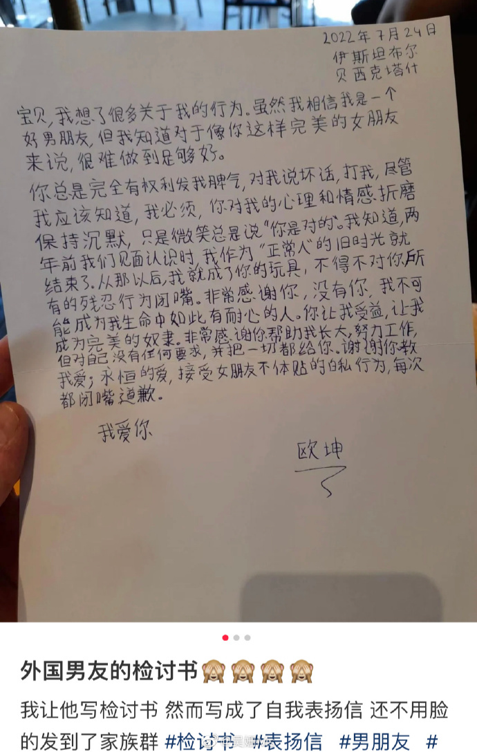 被外国男友写检讨书笑到了