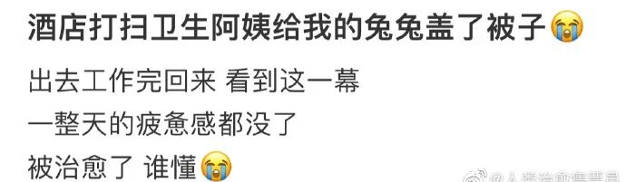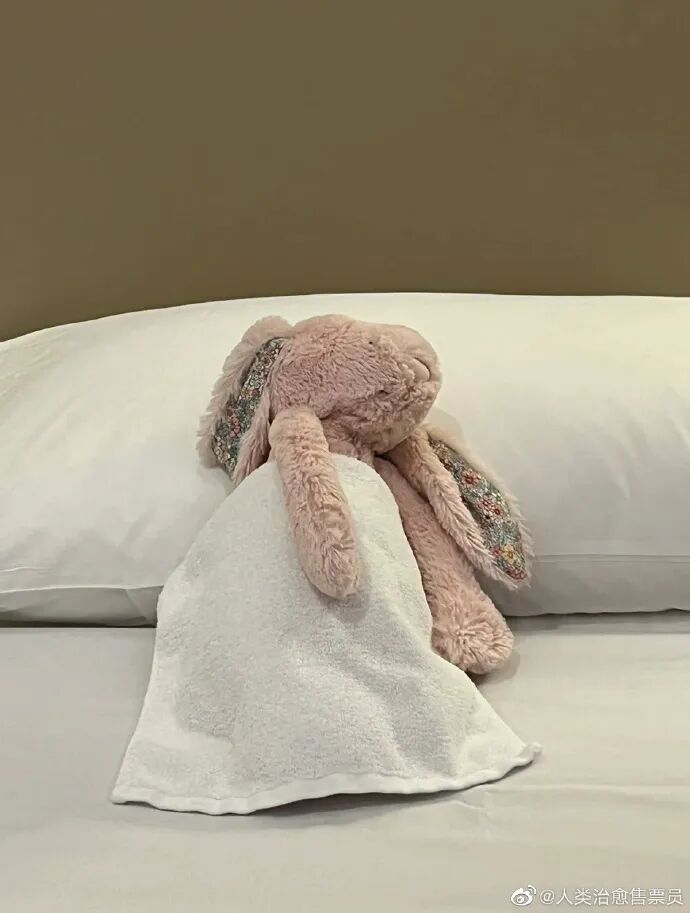 酒店打扫卫生的阿姨给我的兔兔盖了被子