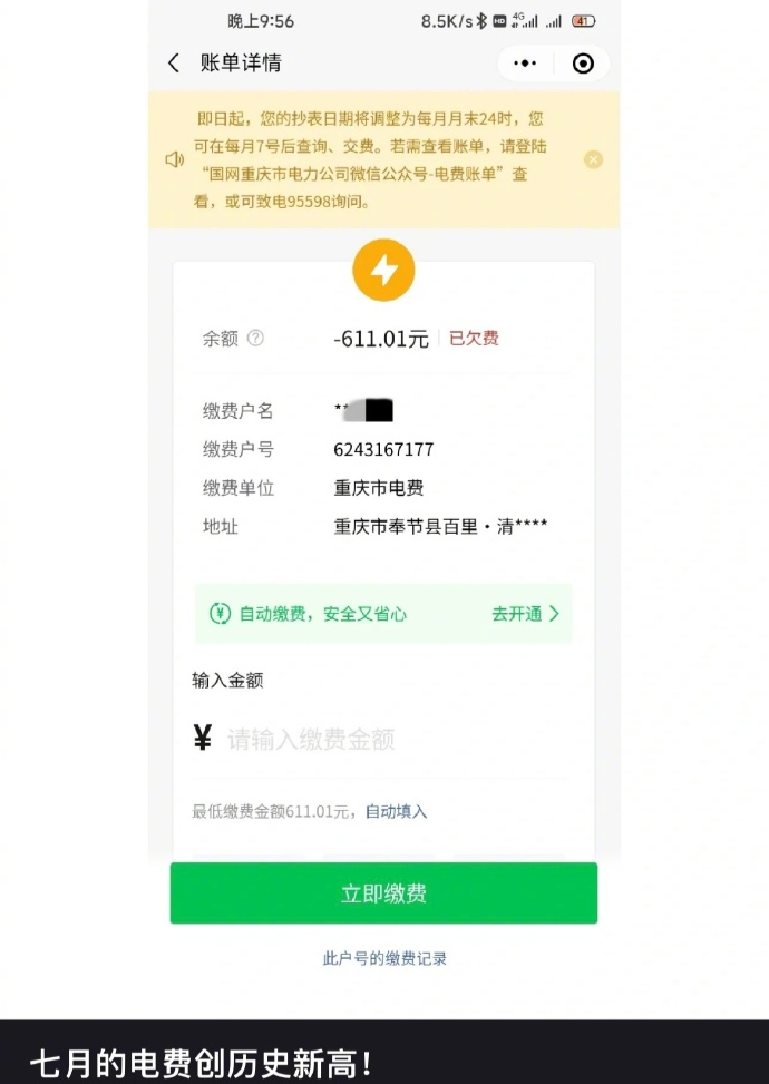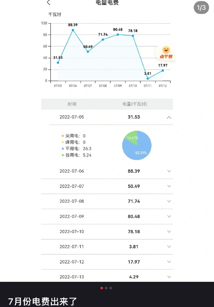七月电费多少钱