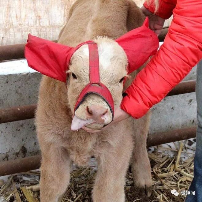 怕小牛冻伤特意做的耳套