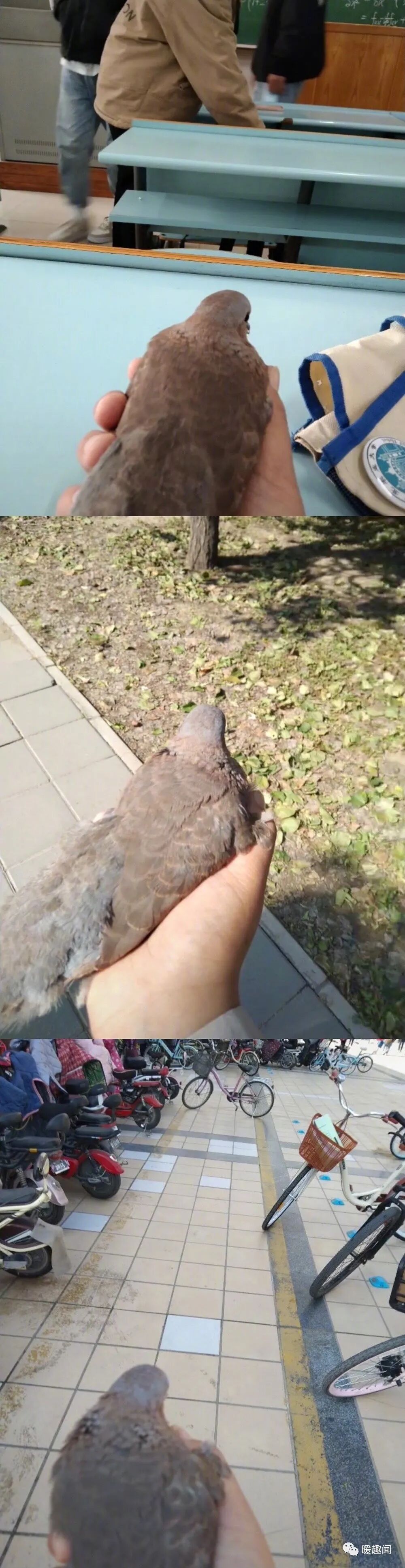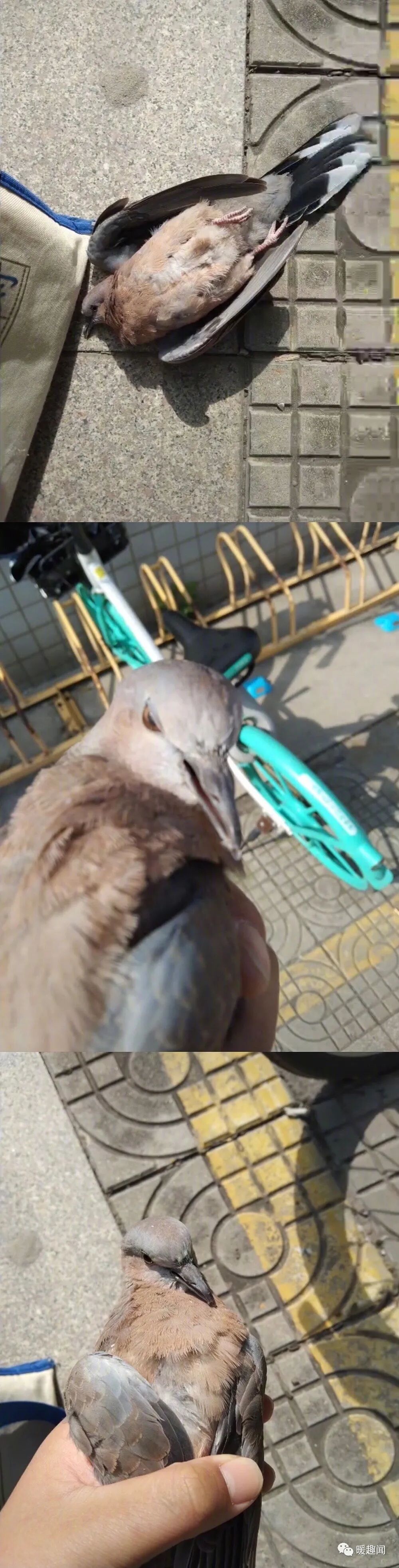 带受伤的斑鸠见了世面