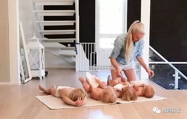 最初是母乳喂养,但显然应对四个孩子不是一般的“压力大”,只得改成奶粉喂养。