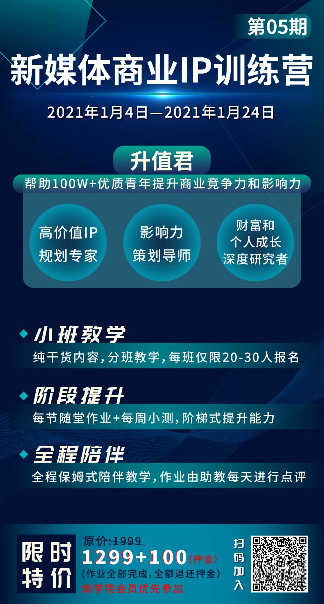 《新媒体商业IP训练营》第05期正在招募,希望你能在这里找到自己的定位。