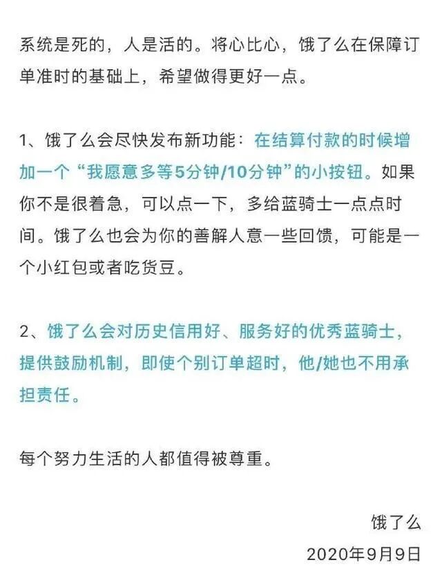 同样是2020年,饿了么试图推出一个功能,你愿意多给我5分钟吗?把本来应该用算法和系统解决的问题,推给了用户。