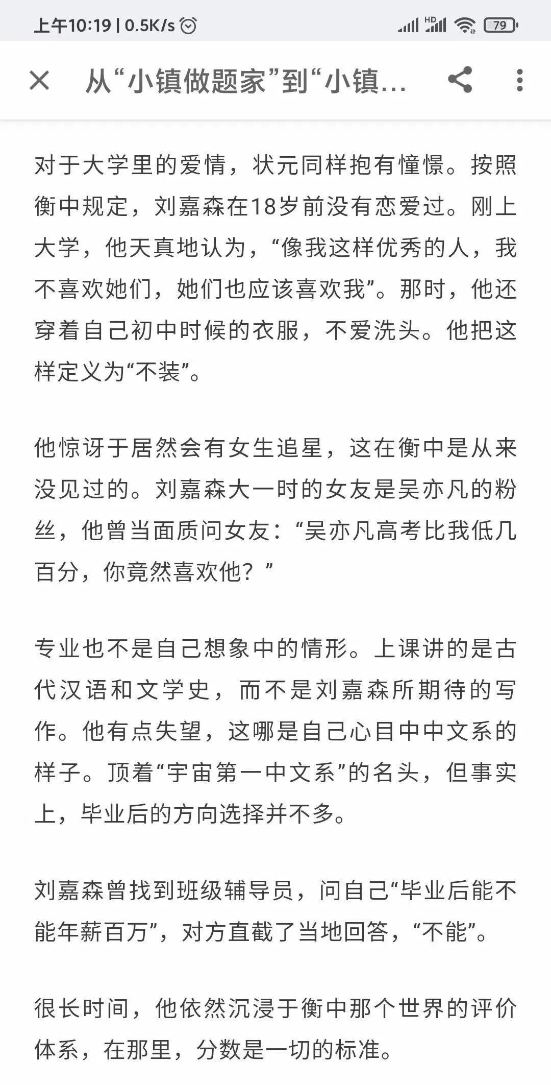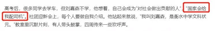 衡水中学的状元,刘嘉森,他自己在大学的时候,不修边幅,不能接受女朋友追星,最可怜的是,他那时候还一度幻想,自己毕业后能年薪百万,也就是说,政治正确=商业正确,「国家会给我配司机」。