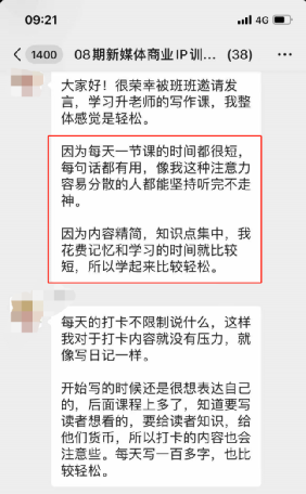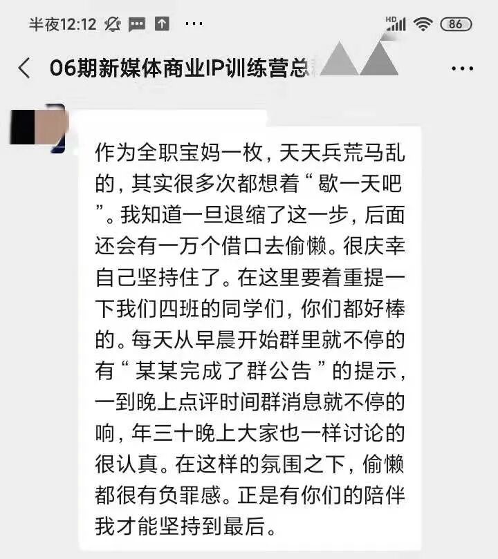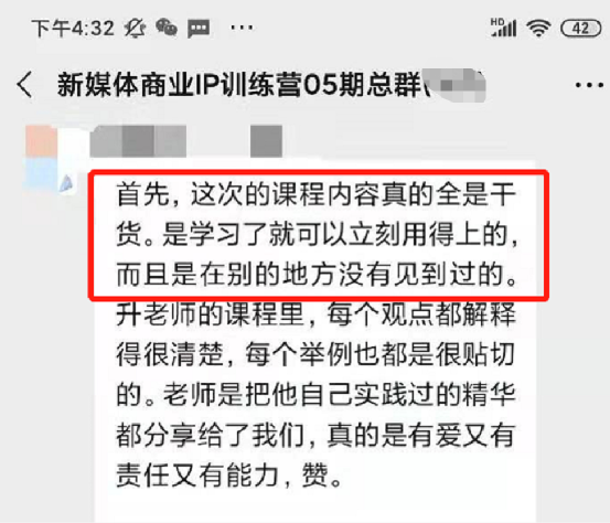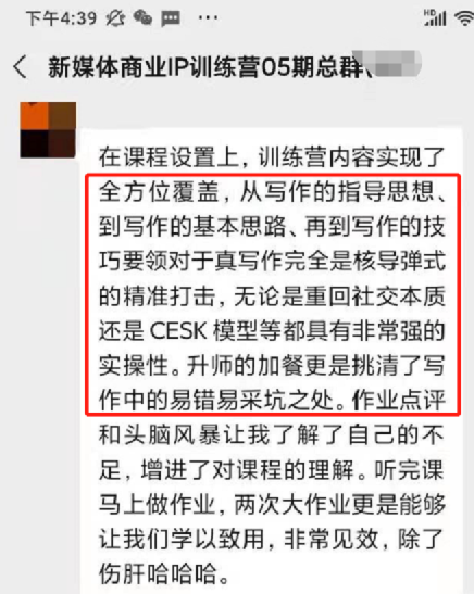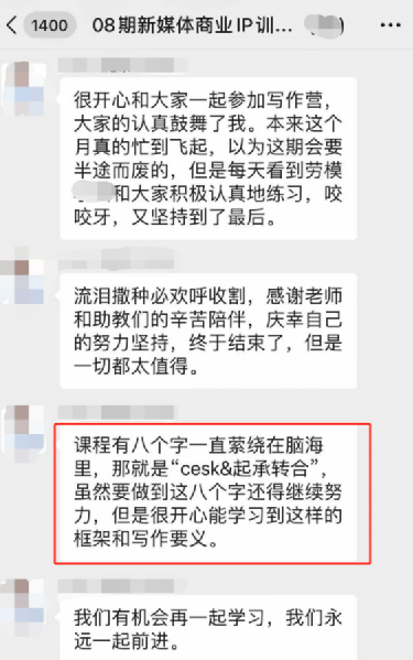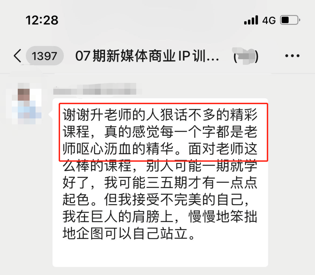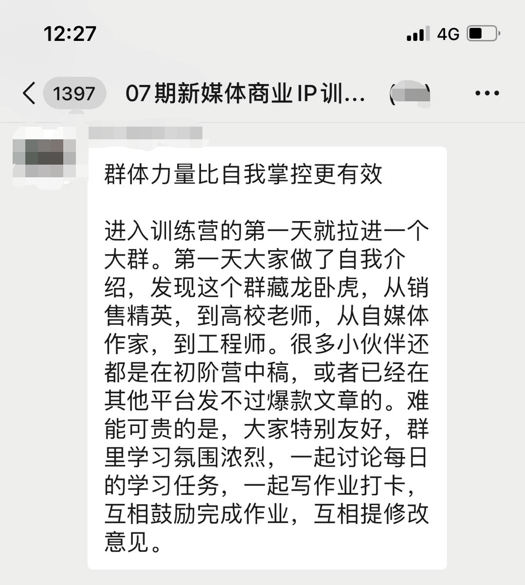 我的《新媒体商业IP训练营》已经走过了8期,经过了几百人的打磨,不同于一般写作课的是,教商业IP意识培养,教产品经理思维,这是最核心的东西。我也是经历了几年的思考和打磨,线下我也给几十家公司进行过培训,进行过几百场的培训讲座迭代,用了很长时间,才把课程打造得更适合一般人。