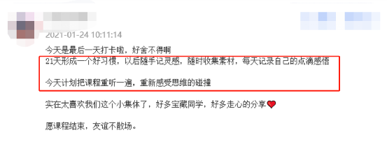 每一个知识点,每一次作业,都可以用于实践,即学即用,比如日常小打卡适合微博平台写作,每日课后作业适合小红书、抖音等平台创作,大作业适合知乎、公号、头条等平台创作。