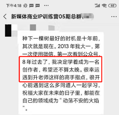 这个课程,其实也是我培养和自己员工的内部教材,这几年来,培养了不少人才,有人已经成为大企业的新媒体负责人,有人已经开始在微博有了上万的粉丝,有人经过学习,在自己自媒体平台获得以前上百倍的流量,有人从天坑专业的毕业生,成了月薪2w的新媒体人,有人开始有了自己的第一笔副业收入。
