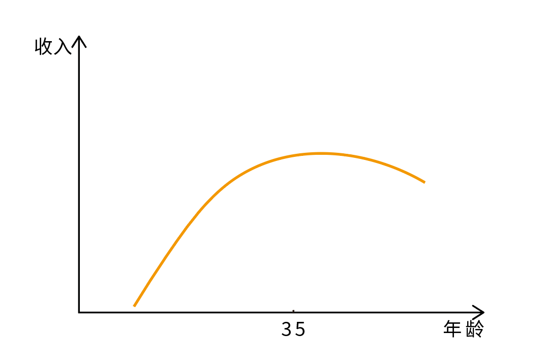 如果给年龄-收入画个曲线,大多数人的曲线走势是这样的。