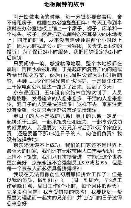 刘强东同学最近有点忙,当年大强子承诺「永远不会开除任何一个兄弟」,话说得好听,就是事办得不漂亮,今年转头就忙着重新定义「兄弟」两个字的含义,提出「混日子的人不是我的兄弟!」既然不是兄弟了,那大哥把你当成「三类人」淘汰也就没有心理压力了,因为大强子说了,「以我的体质,做到8116+8,周一到周六,早8点工作到晚11点,周日工作8小时,每个月休假两天。」