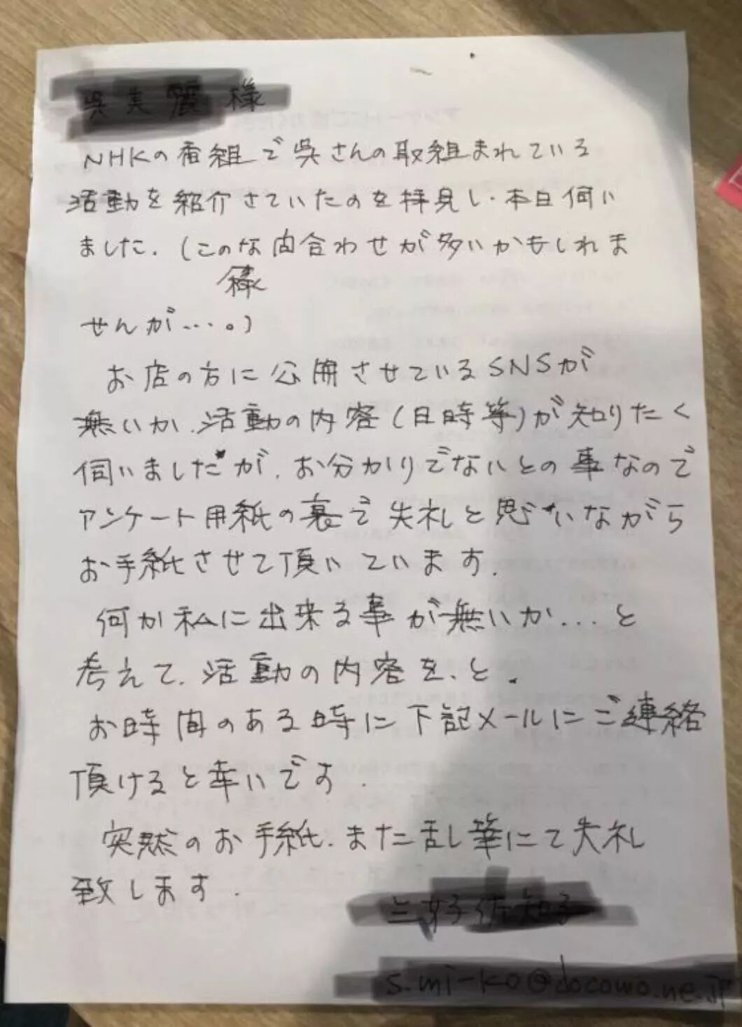 之所以被NHK报道,不是因为她事业的成功,而是她的义行。她有感于中国人在日本的形象特别差,她自己租赁店铺的时候,曾经被人因为是中国人不租给她,她所在的埼玉县西川口,曾经被专门写上中文告示牌,提醒不要乱扔垃圾。因为一些中国人的行为在日本人的印象中,乱扔垃圾这种行为,很多都是中国人所为。