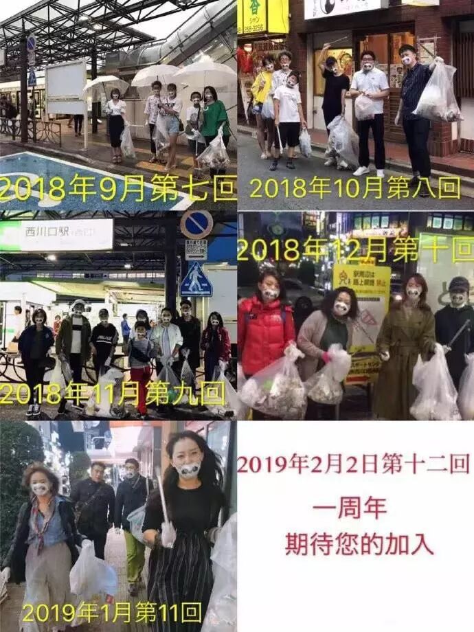 面对这种情况,Aya决定把华人丢掉的脸面一点点捡回来,她发起了一个捡垃圾的行动,每个月第一个星期六固定在西川口街头捡拾一个小时垃圾,最开始只是她一个人,后来,越来越多的中国留学生、职员,学生,家庭主妇,开始参与进来,于是每个月的周六,在埼玉县西川口,总有一群戴着萌萌的国宝大熊猫口罩的中国人,在街头捡拾垃圾。