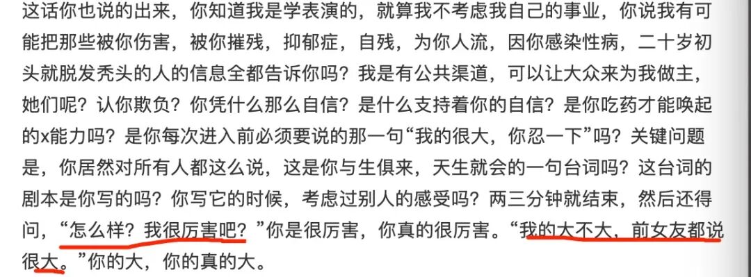 还有这种,「我很厉害吧」,「我的大不大」,这些描述都极大满足了观众的窥私欲。