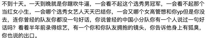都美竹的厉害,就是她的字里行间,表面是在控诉,但是却夹杂着各种信息量,比如吴先生队友有狐臭,顶流的队友是顶流,于是#哪个队友有狐臭#马上上了热搜,其他粉丝吃着吃着瓜,发现这瓜砸自己头上了,再也坐不住了。