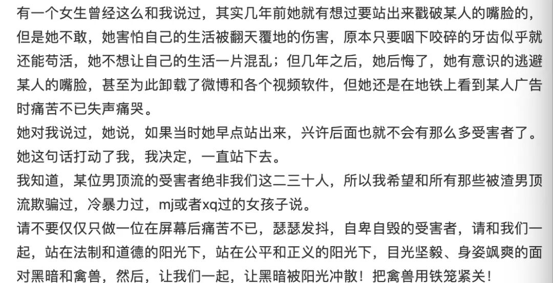还需要自己的人设,如果只是做一个受害者,那么事情过去就过去了,没有任何价值。