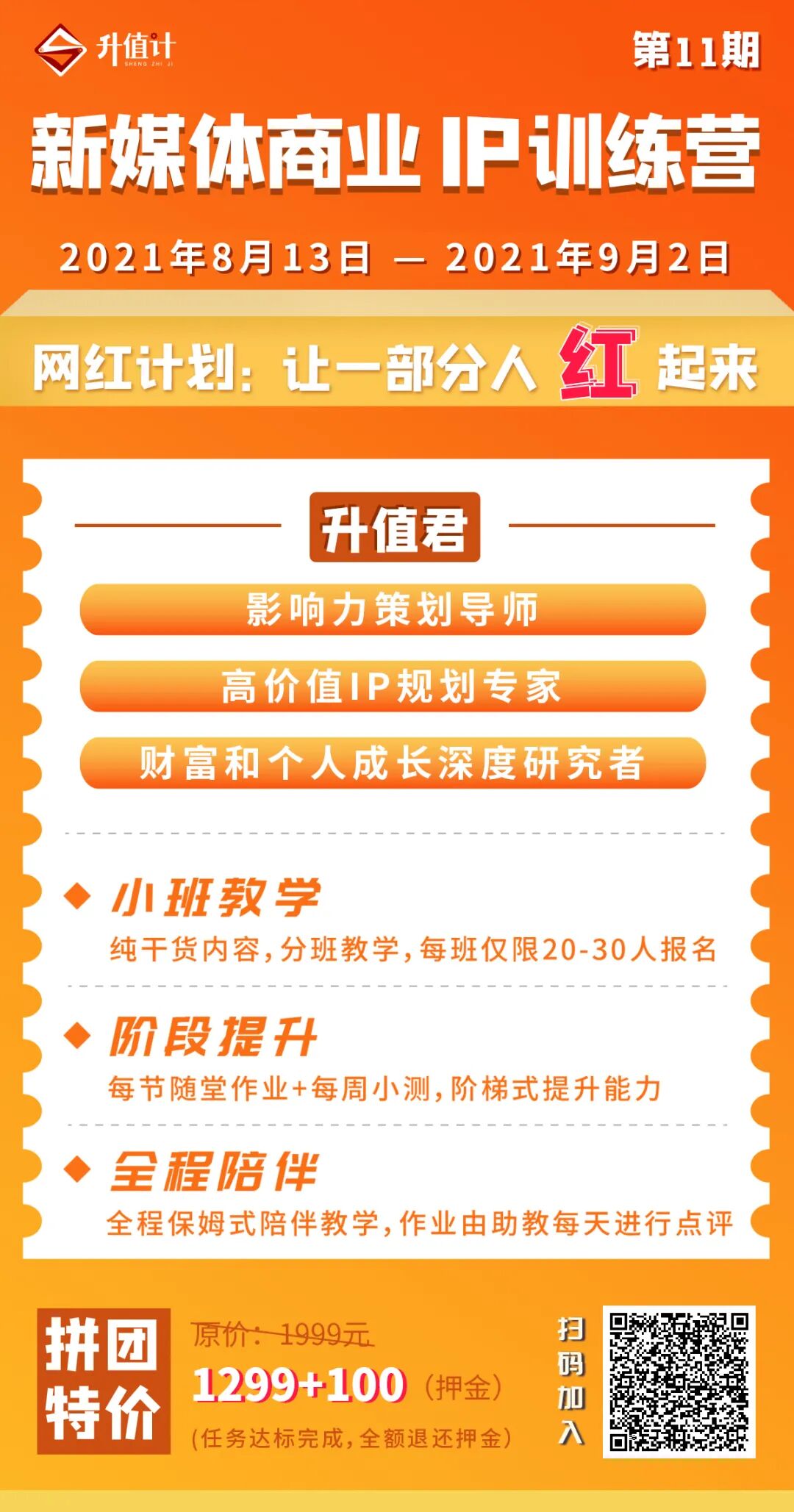 我是升值计主理人升老师,为你带来第11期新媒体商业IP训练营,这里不止教写作,不止教新媒体,更教你商业的定位,赛道的选择,产品的搭建。商业这两个字,不是随随便便加上去的。