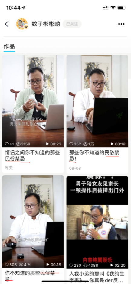 然后看这张图,明眼人都能看出来,画风变了,他在抖音的画风还没有变,这是其他平台,现在已经开始走玄学路线。