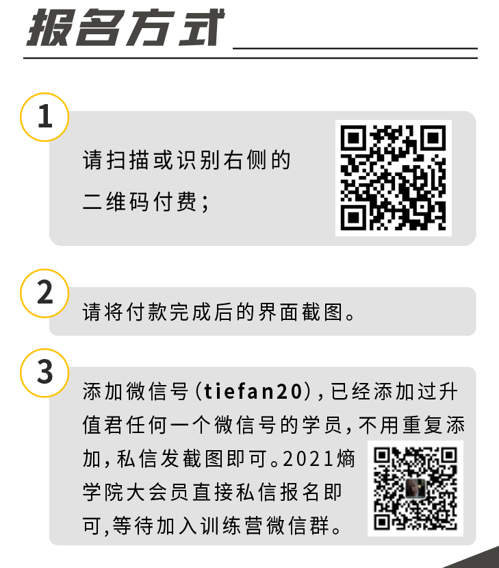 训练营原价1399元,现在报名还可享受限时优惠价,699元,报名截止时间10月25日,课程支持无限回听,2021熵学院大会员可以免费参加。