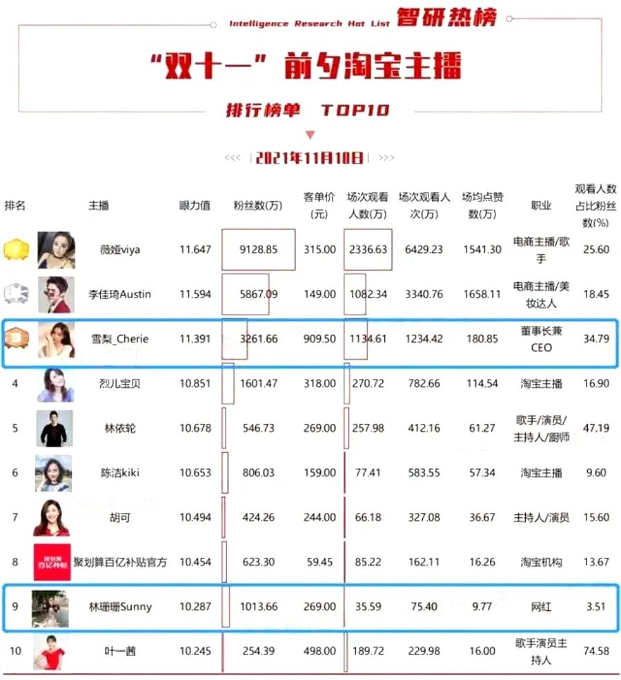 今年双十一前,雪梨在淘宝主播榜排名第三,林珊珊第九,天下第三、天下第九被查,天下第一、天下第二会怎样呢?