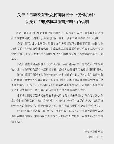所有不看头部主播直播带货的人都亏了。所以欧莱雅的道歉,那个括弧加的真的厉害,堪称全篇精髓,它成功地让品牌商站在了群众堆里,李佳琦、薇娅的粉丝权益,至少不是全部消费者权益。