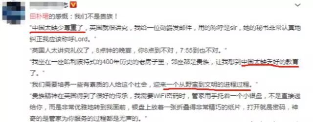 前不久,《甄嬛传》某女配大谈特谈贵族精神,写了一篇狗屁不通的《三代才能培养一个贵族》,惊讶于英国贵族的仪式感,感叹国人没有仪式,津津乐道于英国贵族送Wi-Fi密码都要用纸片写好,用银盘托着送上来。