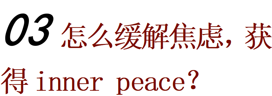 别人给你压力了,让你焦虑、恐惧了。比如你的领导对你发火,你这时候直接怼回去,去硬刚,可能当下会非常爽,焦虑也能消除,但是这样做的结果,就是你可能会因此被辞退或者领导给你穿小鞋等等,引发一系列负面的后果,所以,从现实的意义来说,inner peace就非常重要,它不仅能帮助缓解焦虑,还能够保护你不受到社会规则的伤害。