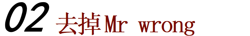 还有一种思路就是,去掉Mr wrong。你要把所有的错误选项去掉。比如,有狐臭是你绝对不能容忍的,那么你首先要把狐臭这一点列出来,有狐臭的男人一律pass ,或者你最不能容忍的是秃头,那么秃头的男人一律pass,先把你那些最不能容忍的男生给挑出去。