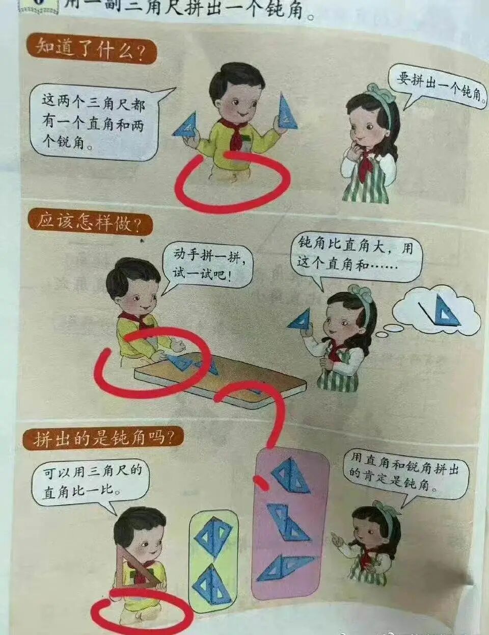 人教版数学教材的配图,「于2013年通过教育部审定」,「2014年秋季上述学科的所有年级全部使用修订后的教材」,这其中包括有问题的数学教材,最晚在2014年,使用人教版数学教材的,几乎都看到了这个插图。