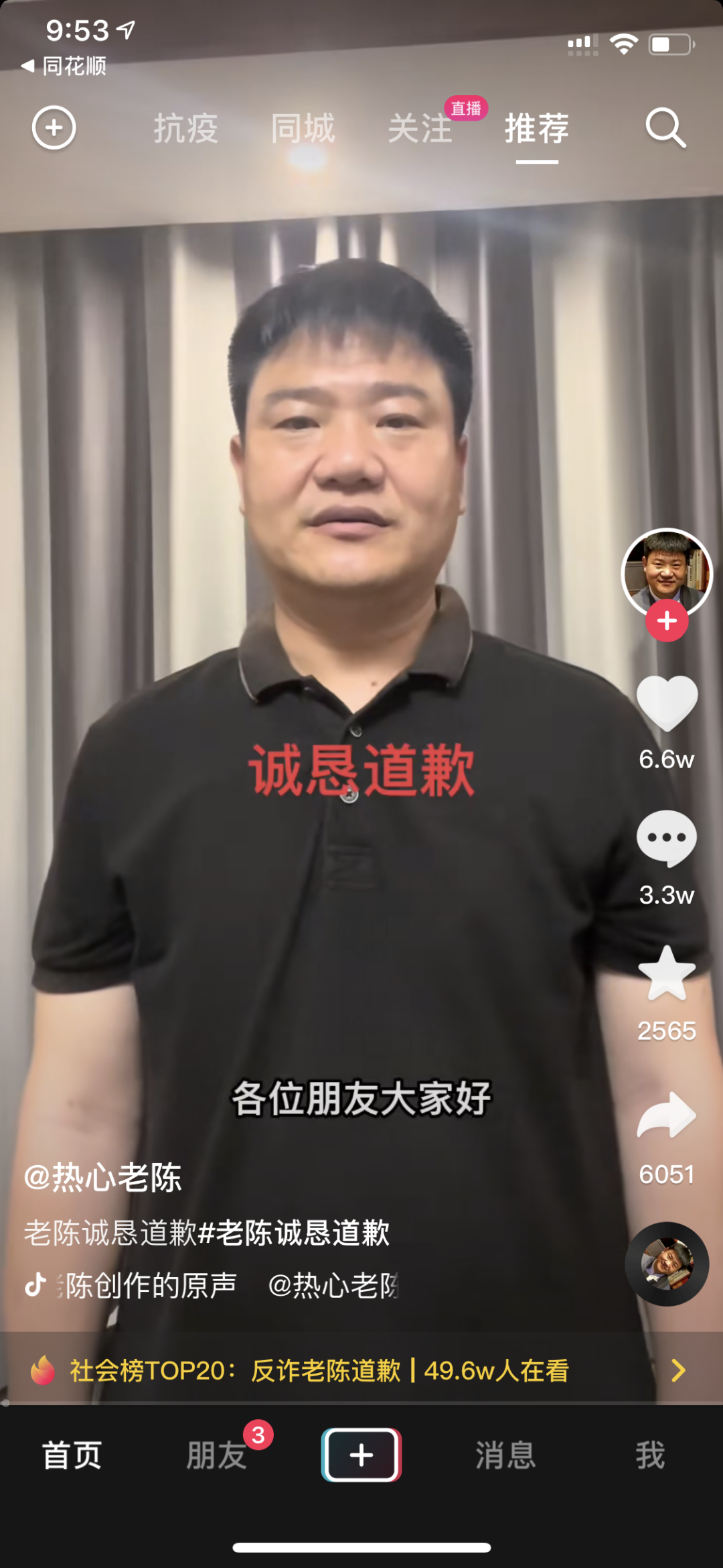 果不其然,在我写这篇文章的时候,老陈就道歉了。