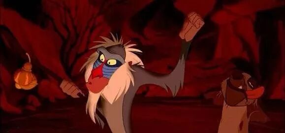 而拉飞奇和犀鸟沙祖呢,其实他们没有任何力量,沙祖靠情报侍奉木法沙,狒狒拉飞奇则更为玄妙,他负责预言占卜,跟天上的星星沟通,维护所谓天上的星辰是历代狮王的传说,强化木法沙家族的统治合法性。这就是典型的弄臣政治,这也是所有强力统治者的共性,越是强力的国王,越喜欢柔弱的弄臣,他们有时候是伶人,有时候是巫师,有时候是太监,因为这些人天生缺乏挑战最高权力的强力,所以只能成为王权的附庸,反而更便于操纵。
