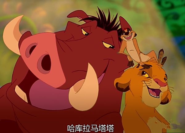 而当他们知道辛巴是荣耀王国的有力竞争者时,一向HAKUNA MATATA的彭彭和丁满,一点也不HAKUNA MATATA了,他们选择跟辛巴回去夺王位。影片里说,这是为了友谊,可是这是为了友谊吗?这是一个让他们成为御前大臣的机会。