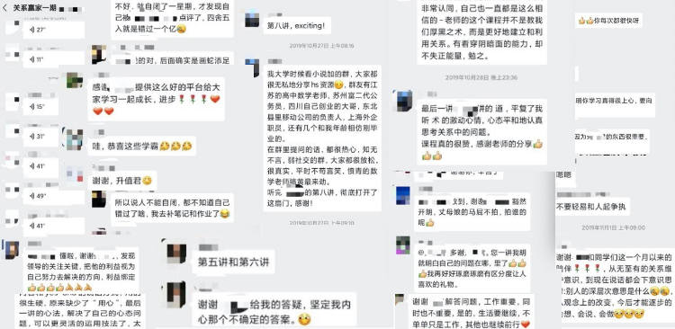 2、课程精讲:一个月的社群服务,升值君会为大家精讲关系攻略,并亲自布置批改作业;