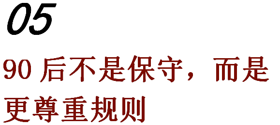 遵守家里的规则,你就父母眼中的好孩子;遵守学校的规则,你就能成为老师眼中的好学生,不需要刻意去打破,只需要利用好既定的规则,就有很大的可能取得收获。在这样的背景下,90后更加乐于去遵守规则。