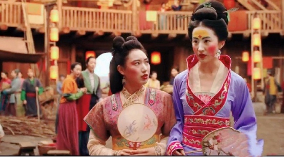 是人物漂亮吗?显然不是,电影中这个麦色皮肤、吊眼、扁脸,面部线条奇怪的女孩,完全不符合国人的传统审美,而涂上厚厚的脂粉去相亲时的扮相,更是带着一股浓浓的日本艺伎风。