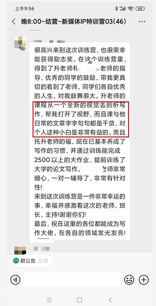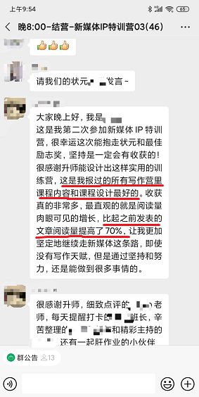 《新媒体写作特训营》03期,受到了学员们的好评如潮。