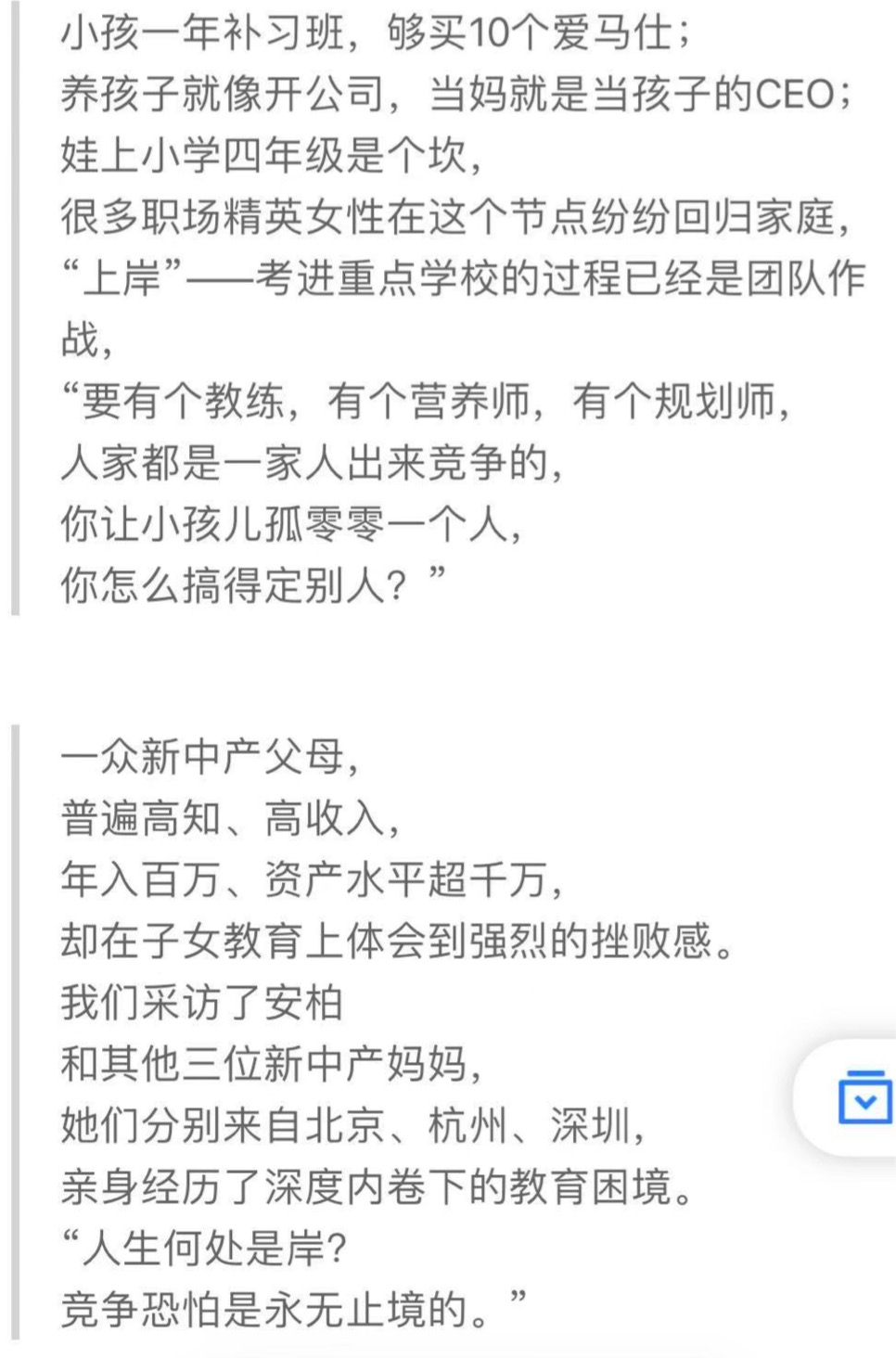 但是问题是,中产最迷信的就是这样的名师,补习班,最崇拜的就是鸡娃上北大清华的父母,而且振振有词,人家有成功的经历,人家浸淫教育几十年,你凭什么说人家不行?