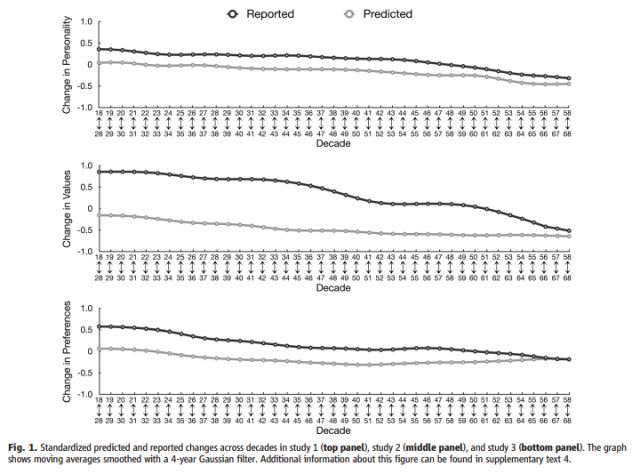 当然,在实验中他还对各个年龄层的人进行观察。实验结果表明,各年龄段的人都会大大低估未来的改变。