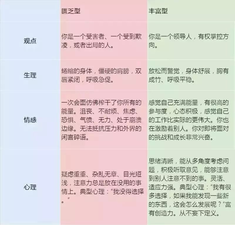 那我们要怎么做,才能释放匮乏?那就要我们去尝试培养匮乏思维的方面——丰盛思维(Abundance Mentality)。