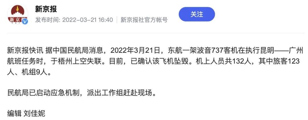 对上一次的飞机失事,大概是30年前的桂林空难。