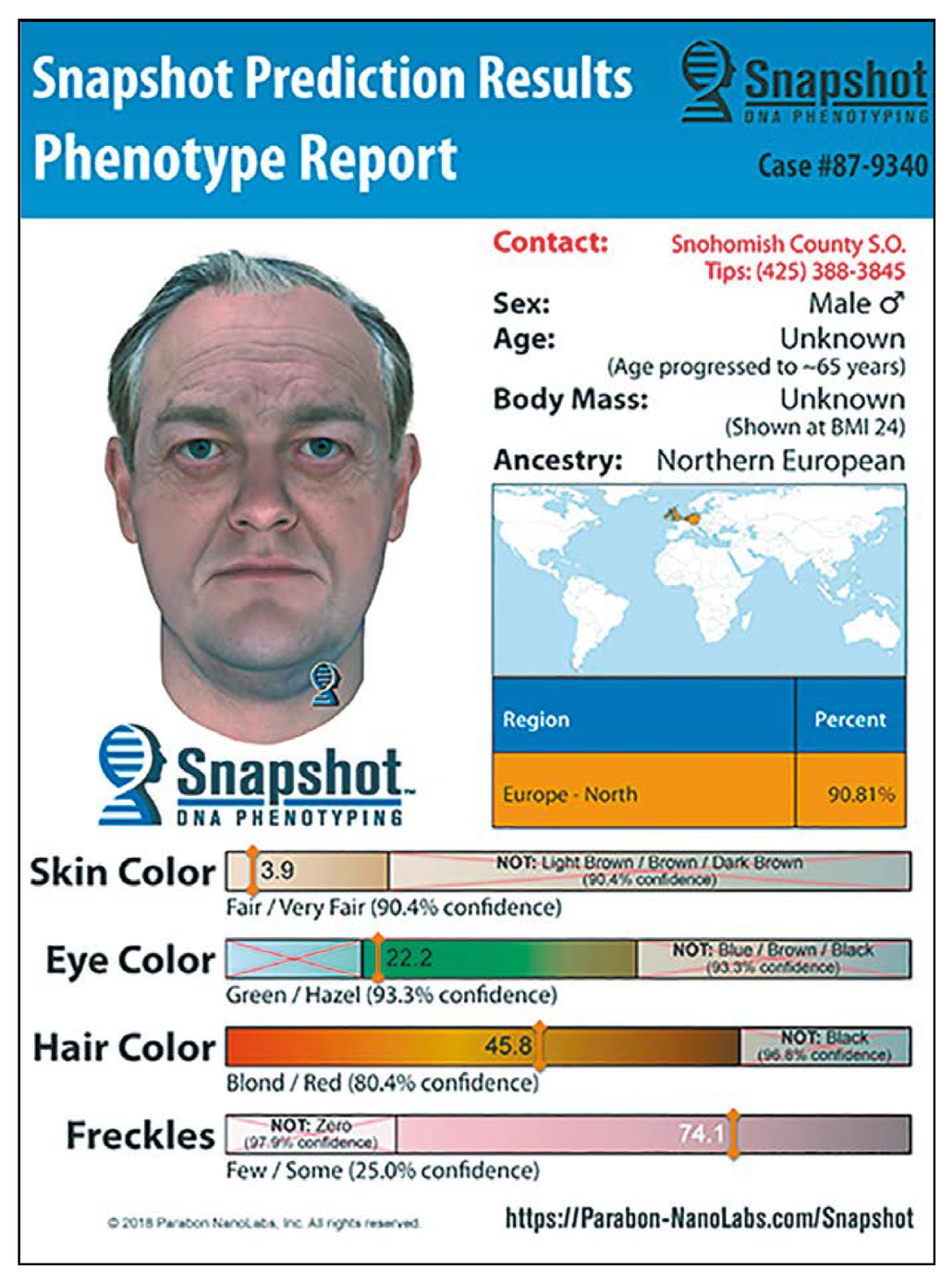 利用DNA信息重构的嫌疑人画像(系1987年某一谋杀案件嫌疑人,已被美国警方依据画像抓获) (来源:Parabon官网)