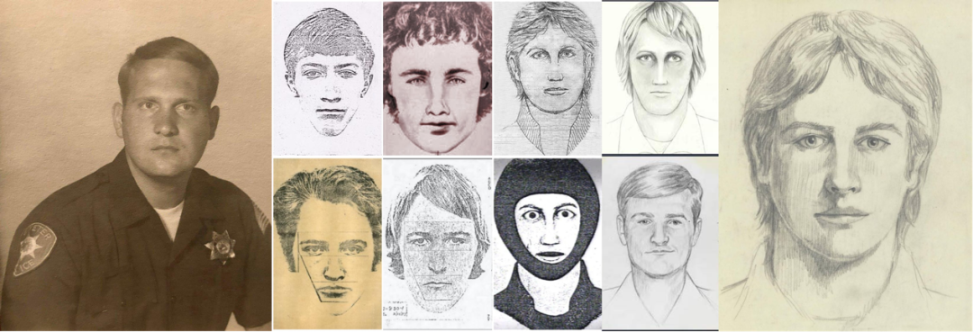 在“金州杀手”案件破案后,人们就发现根据目击者描述绘制的嫌疑人速写实际上对破案的帮助相当有限。如下图各版本速写中,与真人照片(最左)相对接近的可能只有一到两幅(例如最右)。传统方式的嫌疑人速写很多时候反而起了误导警方的反作用。