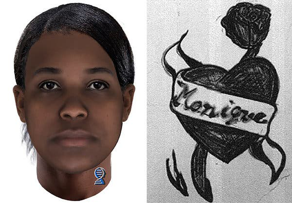 “Monique”面容复原图和纹身(来源:纽约时报)
