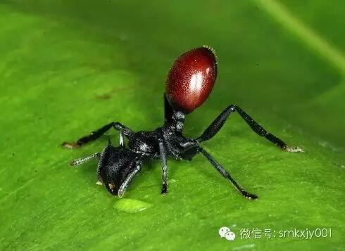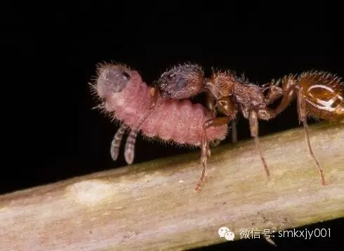 患病鸟类的粪便中含有线虫,当蚂蚁接触这些粪便时就会被感染。它们会释放一种特别的化学物质改变蚂蚁的外观,让蚂蚁的肚子变得红红的,看起来就像一颗成熟的红色浆果,红红的肚子在爱吃浆果的鸟儿眼里就是一颗成熟的浆果——这其中险恶的目的已经不言而喻了。