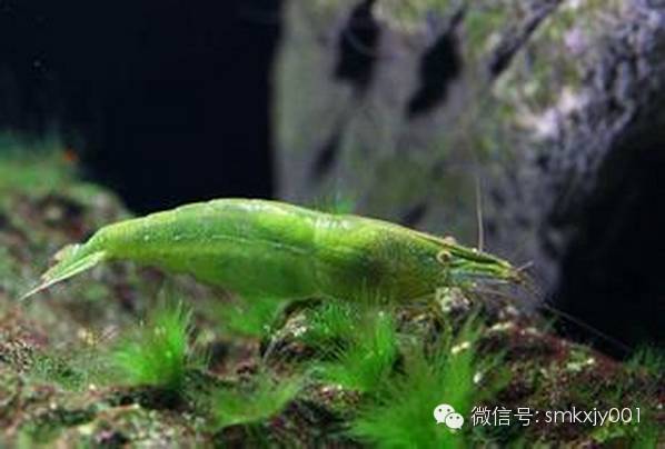 绿晶虾全身绿色,非常漂亮,幼虾受到惊吓时,颜色变淡,定水后可以恢复。这种虾喜欢弱酸性水质,以菠菜、薄片、冷冻红血虫等为食。